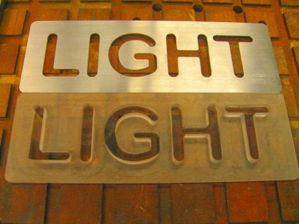 These signs are classy when lit from behind with either fluorescent or LED lighting. Here’s a pic of the pieces: