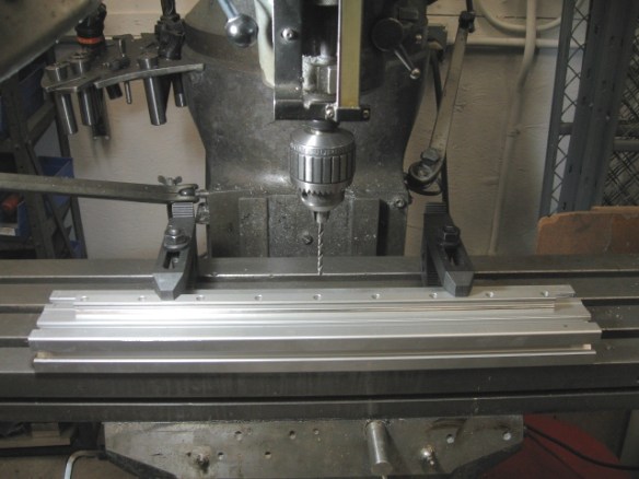 Here’s the 80/20 being drilled on the trusty Bridgeport: