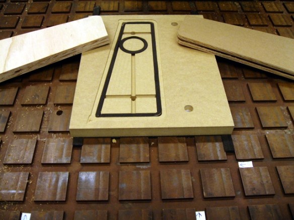 On Monday he filled out my contact form and we exchanged some emails discussing details, Monday evening he stopped by with the material (5/8″ MDO plywood), and now (Thursday afternoon) he has precision cut parts ready to assemble. How cool is that?