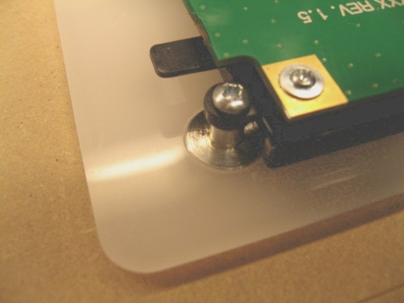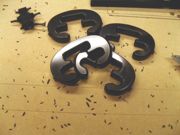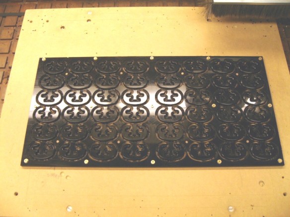 I believe this project involves adding an arcade style joystick and buttons to a PS3. These are 2 sets of parts. Some of these parts required a groove in their edge to accept a plastic “T” molding. The following picture shows a part before grooving on the left, a part after grooving on the right, and the special vacuum fixture in the middle. The vacuum pulls any warpage out of the parts, making sure the slot is perfectly centered all the way around.